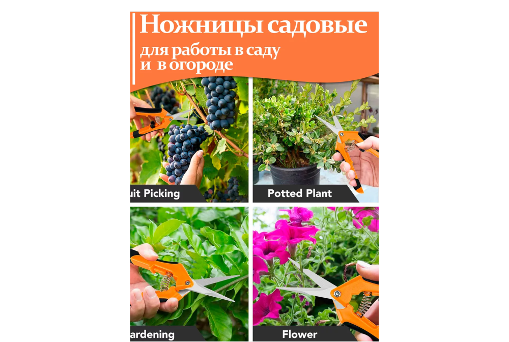 Механические ножницы для сада и огорода с прямым лезвием - незаменимый садовый инструмент для стрижки цветов, деревьев, кустарников. Прорезиненные нескользящие ручки обеспечивают полный контроль над каждым срезом. Лезвия изготовлены из прочной нержавеющей стали для долговечного использования. Секатор оснащен функцией блокировки для безопасности использования. Садовый инструмент с пружинным приводом позволяет выполнять срез не травмируя растения. Не ломает, а срезает! Отлично подходят для сбора фруктов, винограда и обрезки виноградной лозы, тонких веток, ягодных кустов и фруктовых деревьев. Идеальны для вашего сада, огорода или дома. Сделают вашу работу комфортнее и приятнее за счет качества и удобства данного инструмента.